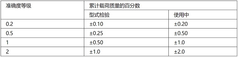 皮帶秤的精準(zhǔn)度原來分為三級,即0.5級,1級和2級,隨著傳感技術(shù)等技術(shù)的發(fā)展,皮帶秤的計量精準(zhǔn)度也有了很大提高,有了0.2級。任何計量都有允許的誤差水平,皮帶秤不同的精準(zhǔn)度等級有不同的最大允許誤差范圍: